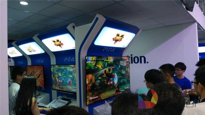 相比于老对手微软科技感十足的试玩区,索尼此次CJ打起来情怀的招牌,将试玩区布置的如同儿时街边游戏厅的模样。这两台街头霸王试玩机吸引了很多妹子驻足,当然人家是带着男朋友的