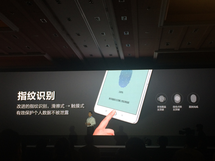 Galaxy Tab S2改进了指纹识别功能,由滑擦式改为触摸式。
