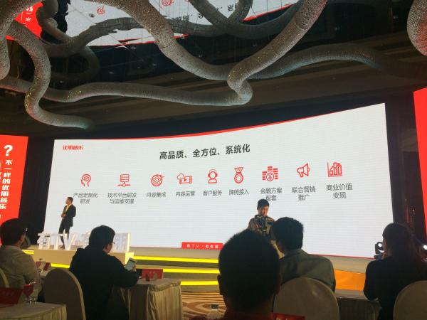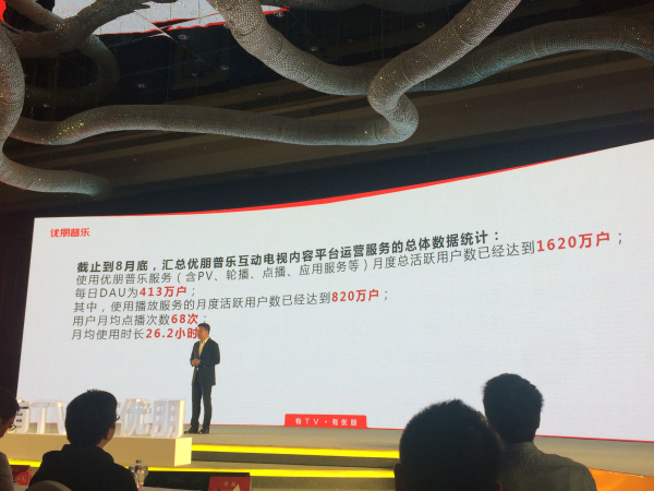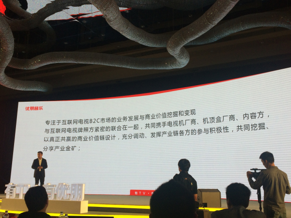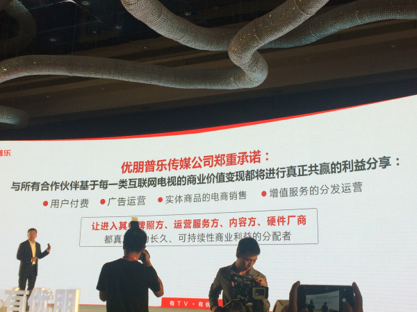 发布会上,邵以丁宣布,优朋普乐获得了广东广播电视台和中国国际广播电台两家互联网电视牌照方的牌照合作授权,成为业内首家获得双牌照授权合作的运营服务商。