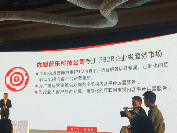 此外,邵以丁在发布会现场宣布优朋普乐科技全资子公司优朋普乐传媒发展公司正式成立,注册资本1.5亿元人民币。该公司将专注于互联网电视B2C市场的业务发展与商业价值变现。新成立的优朋普乐传媒发展公司将在今年内引入更多战略级伙伴以及优质的财务投资机构成为新公司股东,为即将到来的市场全面爆发打下更为坚实的资本基础。而在前不久,优朋普乐刚刚与华闻传媒共同出资2亿成立华闻优朋文化传播有限公司,主要进行独家版权内容采购、分销与影视项目投资,华闻传媒还将持续为华闻优朋配备8亿人民币的业务发展金储备。