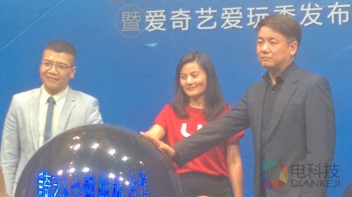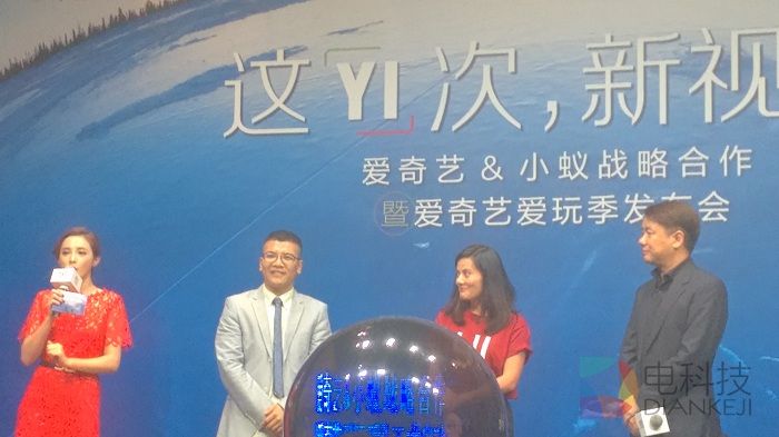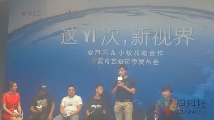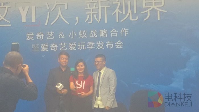 爱奇艺小蚁战略合作暨爱奇艺爱玩季正式启动,同时王川、耿晓华与宋烨使用小蚁相机进行自拍留念。