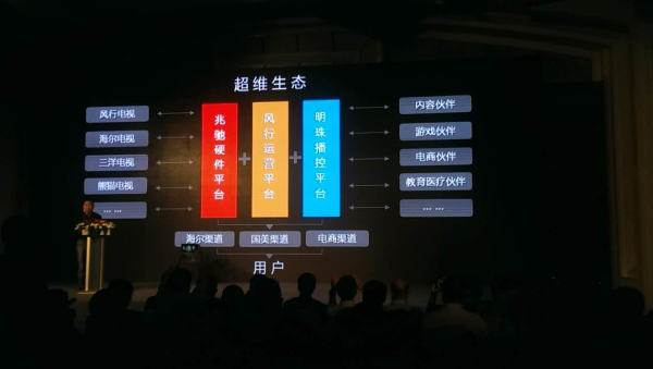 如果读者还是不太了解“超维生态”的话,可以仔细研究下这张详解图,也就是说即将发售的风行电视已经集合了电视产业链中的重要环节,就差把电视造出来了。
