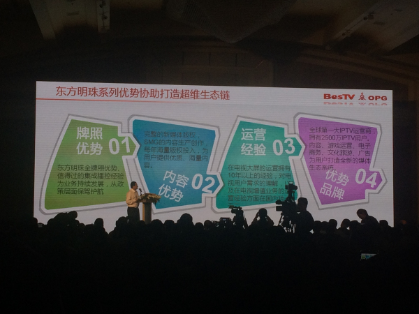 东方明珠副总裁史支焱表示,东方明珠作为互联网电视牌照合法运营方,同时是兆驰股份和风行网的股东,将为“超维生态”提供合法性和海量内容支持。作为全球最大的IPTV运营商,东方明珠拥有10年以上的电视新媒体运营经验,拥有IPTV、OTT和DVB的运营优势,可以为“超维生态”注入独特资源。