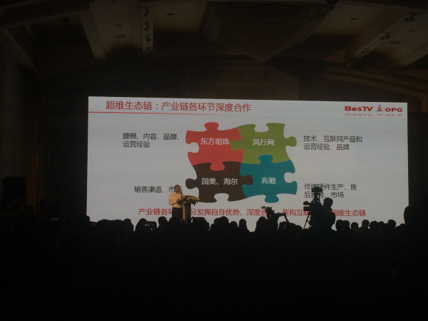 据官方介绍,“目前国内互联网电视产业格局中还没有一家具备全产业链形态,兆驰股份等五方联手共同打造的互联网电视“超维生态”有望打破僵局,推动中国互联网电视上一个新台阶。本次五方联手融合了互联网电视的五大优良基因——合法性基因、内容基因、互联网基因、硬件基因和渠道基因,搭建了电视互联网化进程中唯一的全产业链生态。”