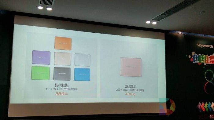 这款创维新一代盒子将于2015年10月23号在京东独家首发,出售规格为价值359元1G+8G+红外遥控器的标准版与价值499元2G+16G+蓝牙遥控器的旗舰版。
