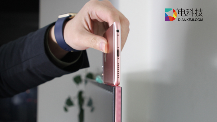 机身背面非常干净简单,上半部分是全金属银色背板,下半部分则为磨砂注塑材质。