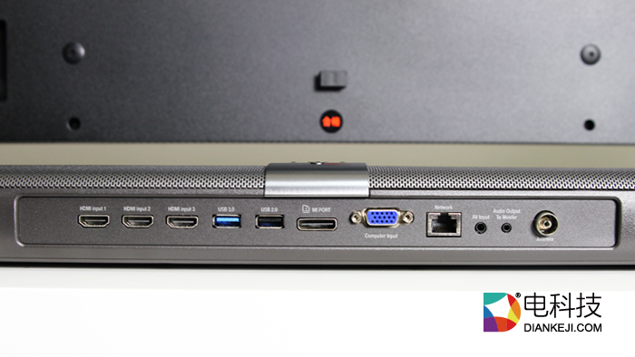 作为小米电视3的独到之处,主机与屏幕分离式的设计还是有了不少新意,其中小米电视主机=音响+智能电视主板+小米盒子,接口部分的包括HDMI、USB、MiPort、VGA、网络、AV in、Audio out和有线电视接口,非常齐全,主机与屏幕之间通过一根MiPort接口线相连接。