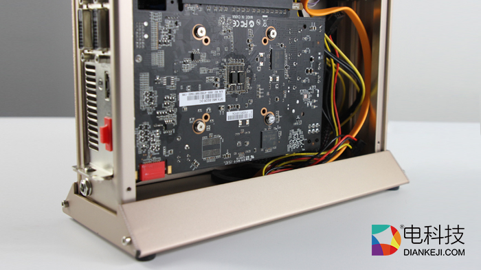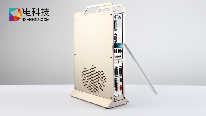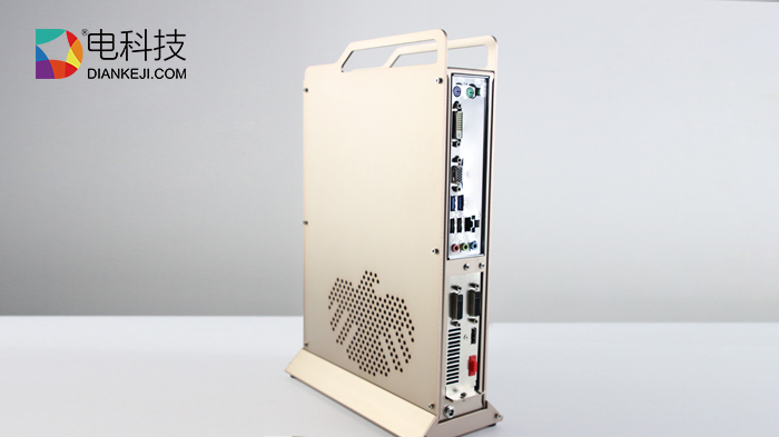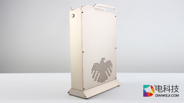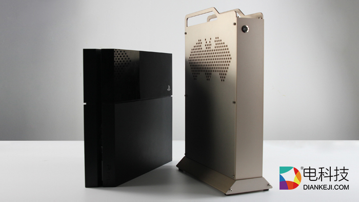 金色全金属机身配合镂空散热设计,四周用内六角螺丝固定,显得更为精巧,机身背后的与传统PC相似,拥有HDMI、USB等插口,可连接键盘与鼠标。而整体与传统游戏主机PS4相比,外观设计也不处于下风。