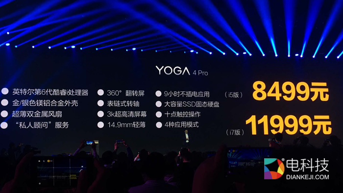 YOGA 4 Pro屏幕分辨率达到3K+级别,采用第六代英特尔酷睿i处理器,并拥有全球最小的酷睿i主板。