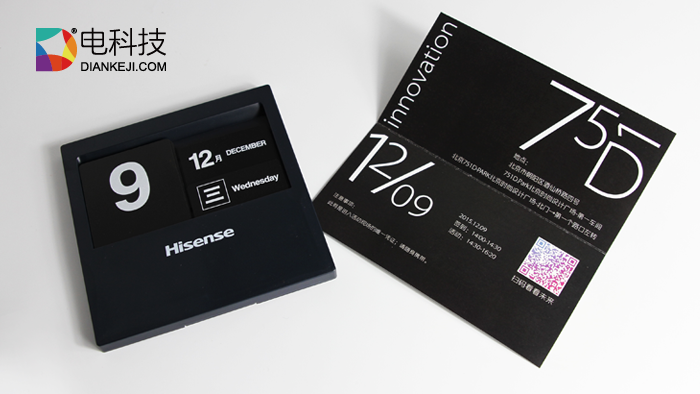 拆开邀请函,是一副可以手动拼装的日历,能够组装出此次发布会的召开日期——12月9日,模块化的日历是否预示着海信此次会推出一款模块化电视呢?