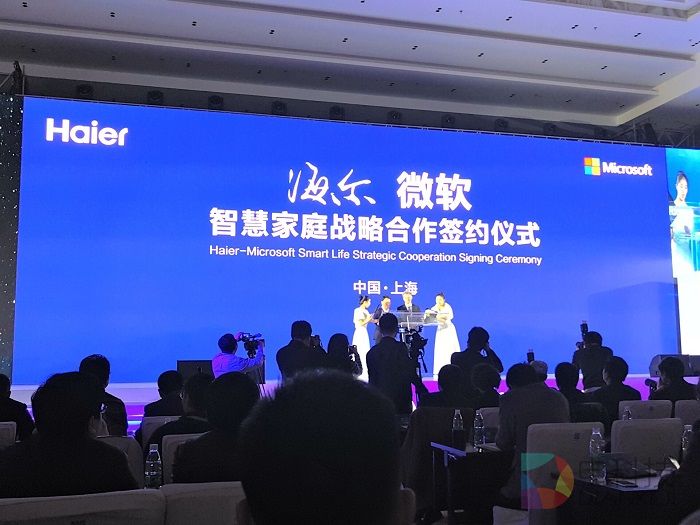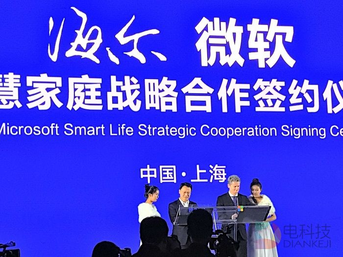 此次发布会上,微软全球资深副总裁、大中华区董事长兼首席执行官贺乐赋与海尔集团董事局副主席梁海山共同签署了关于智慧家庭战略,希望打破物联网行业的瓶颈,通过对人工智能的应用技术的发展让智能家居领域的突破性进步。
