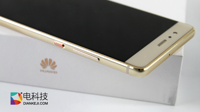 电科技此次拿到的华为P9金色版本还是给人一贯的富贵感,虽然屏幕周围有黑边存在,但手机屏幕左右两边的范围延伸到了机身边框,这种设计,不免有些“ID无边框”的意味。
