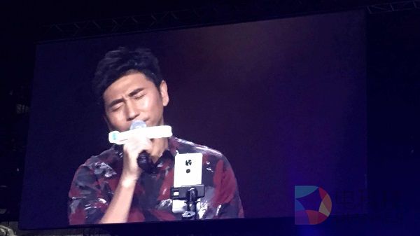 为体验手机音质效果,乐视邀请著名歌手沙宝亮上台用手机录音。