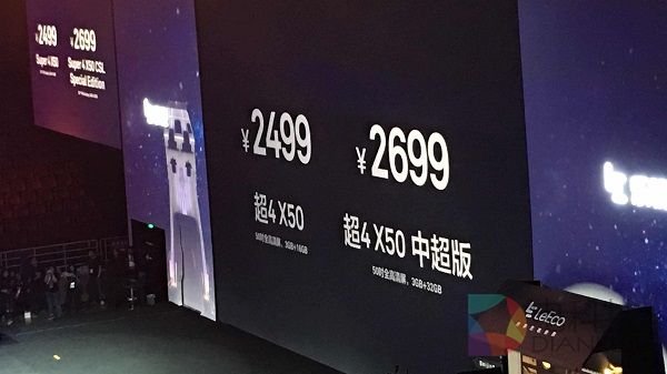作为新品的超4X50 Rro首次亮相,乐视宣布其售价定为2999元。