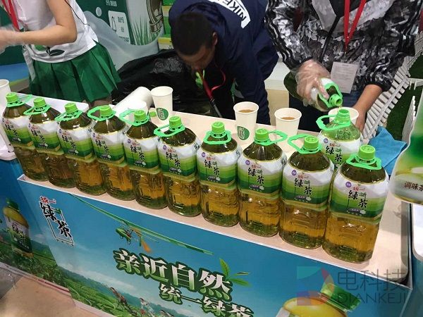 发布会上贾跃亭居然与统一总裁一起喝起了绿茶。