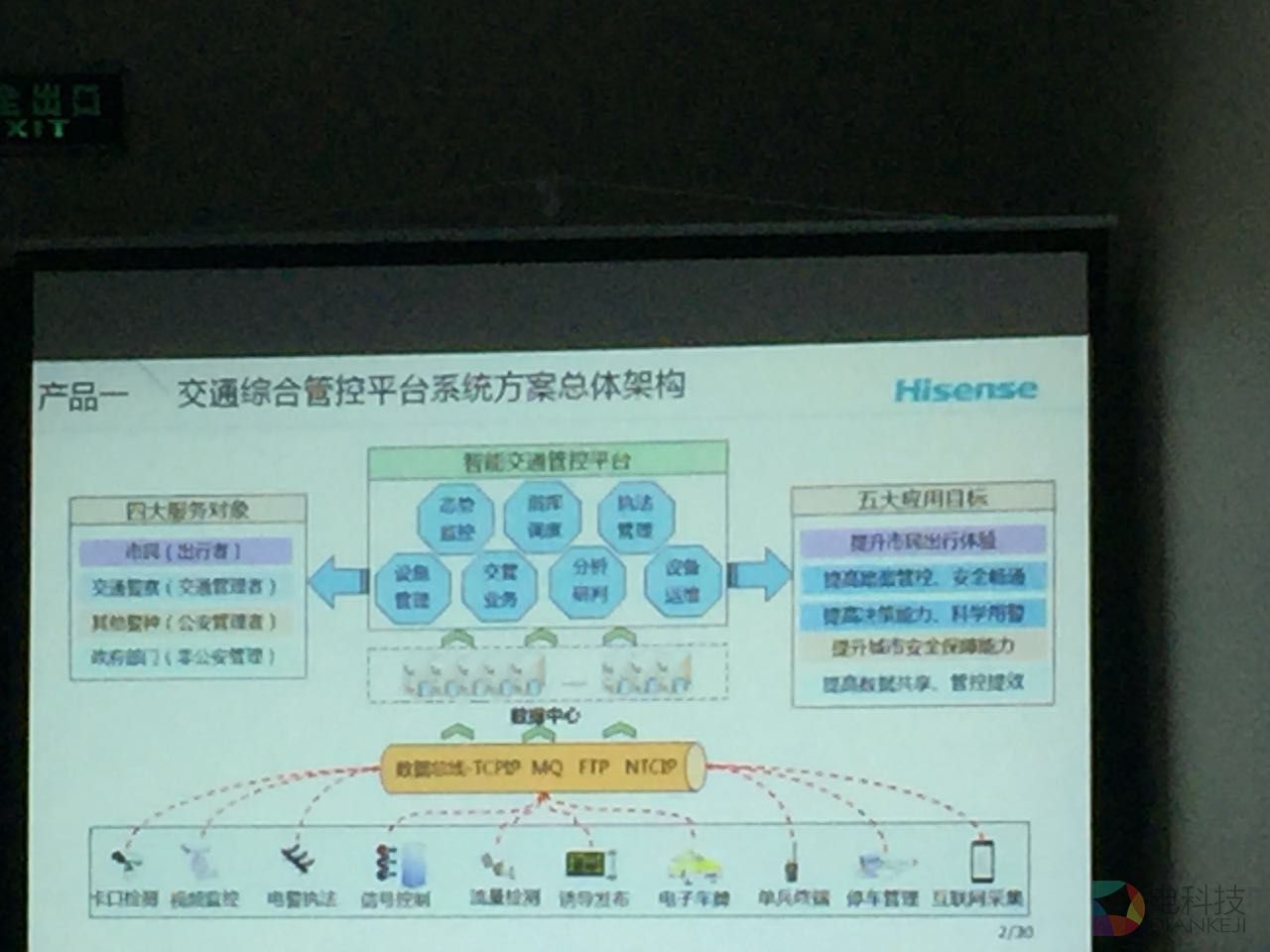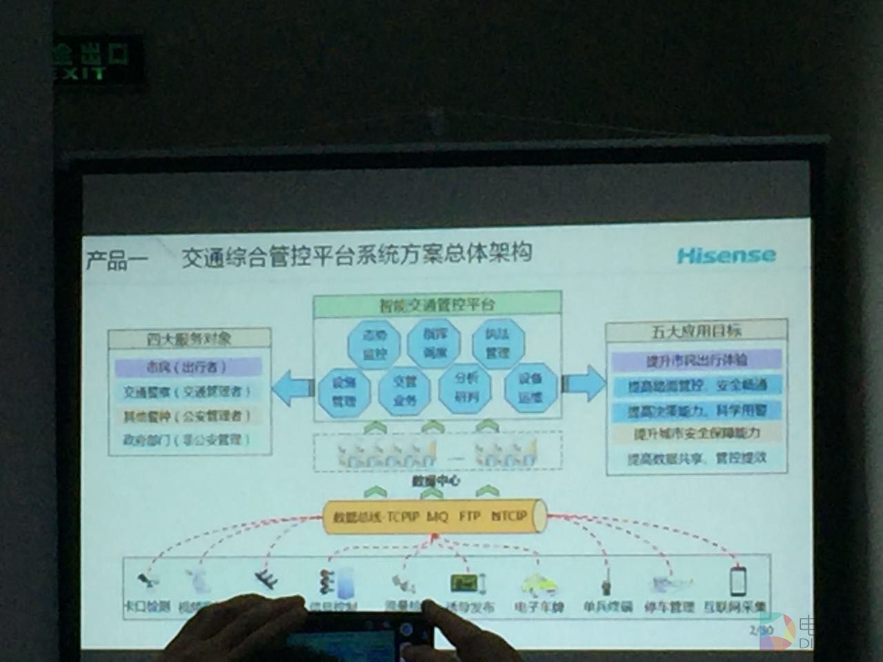 在展会二楼会议室举办的海信网络科技产品推介上,海信网络科技推出四款产品,海信交通综合管控平台、海信交通信号控制系统、海信交通枢纽智能化系统及海信智能交通运维云平台。