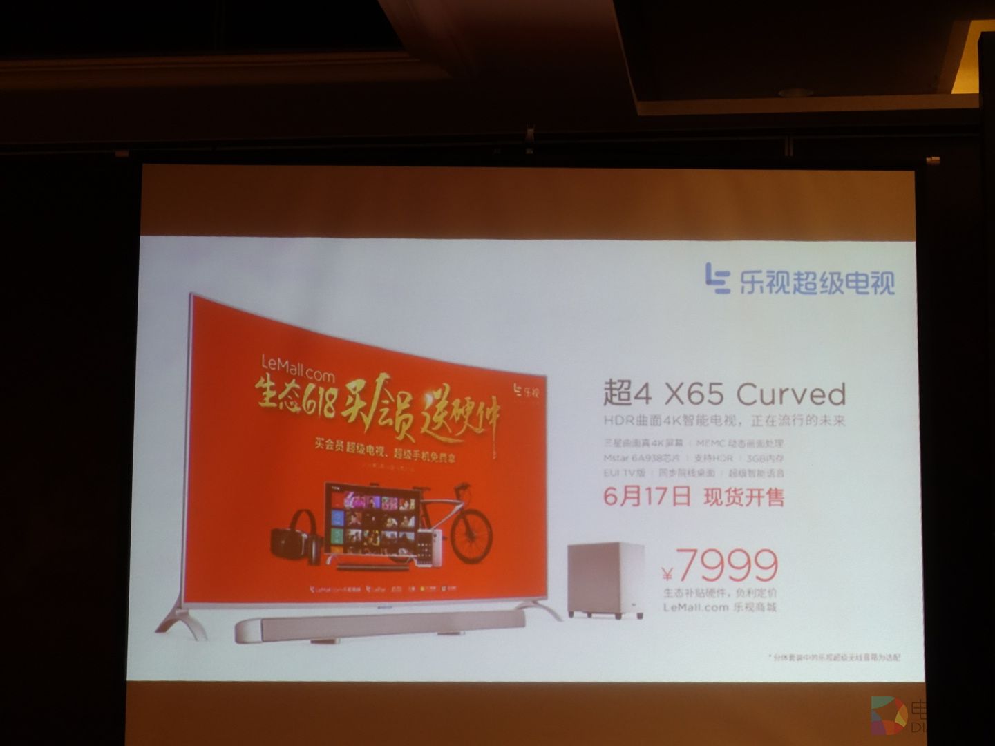 据悉,618期间,乐视将发布四款新品,其中包括第四代乐视超级电视X65 Curved曲面电视。
