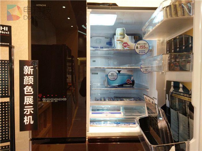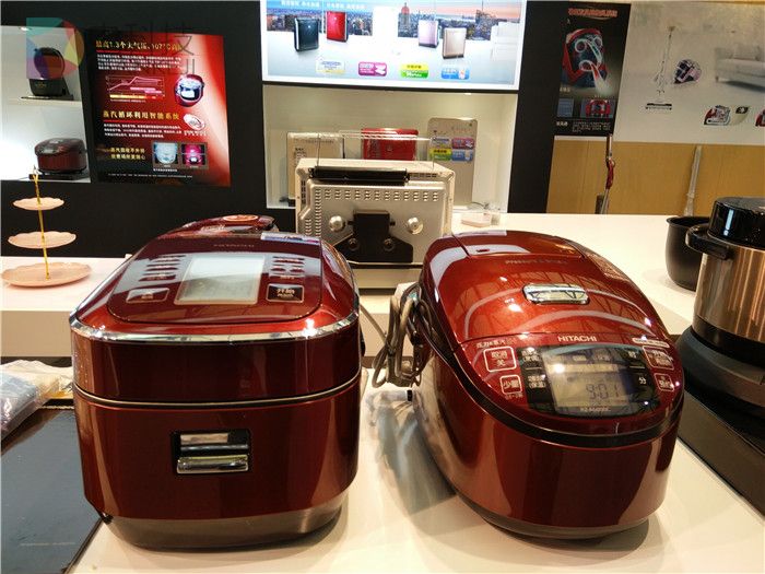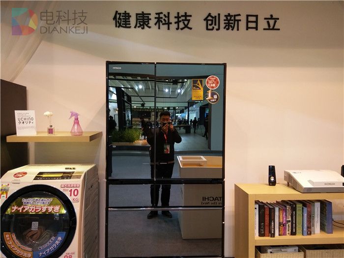 本次AWE,日立展出了冰箱、空调、洗衣机、吸尘器、电饭煲、空气净化器等产品系列,但大部分的产品机身上都贴着日文标签——这些产品都是日本原装进口家电。