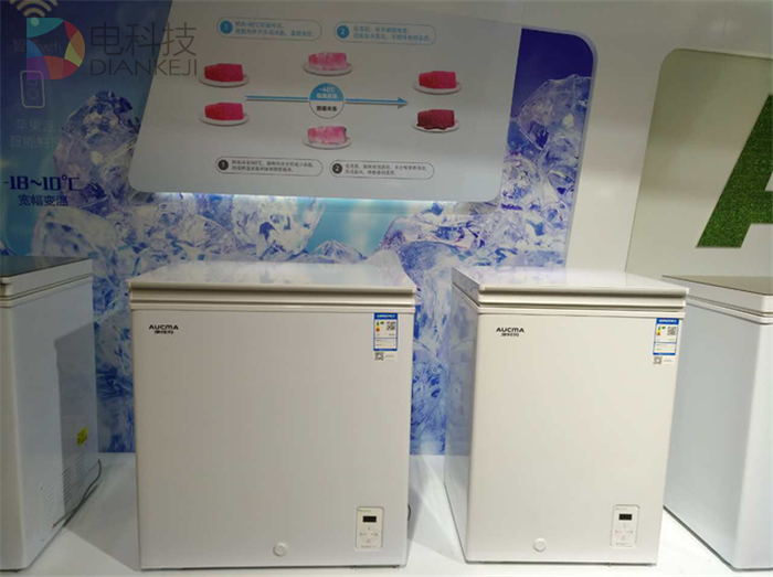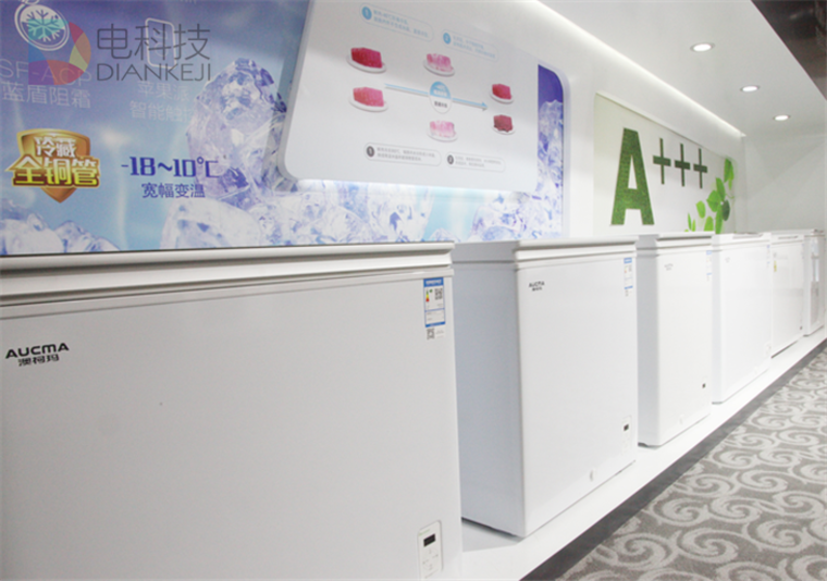 澳柯玛展出的深冷速冻、节能+++、豪晶彩等系列冷柜升级新品。冷藏全铜管、智能WIFI、深冷速冻、蓝盾阻霜等等众多新技术纷纷亮相,重新给消费者定义了什么是真正的家用冷柜。