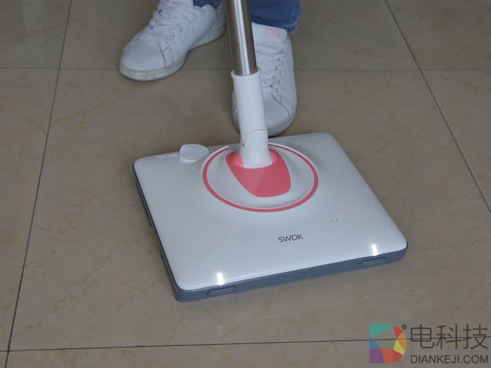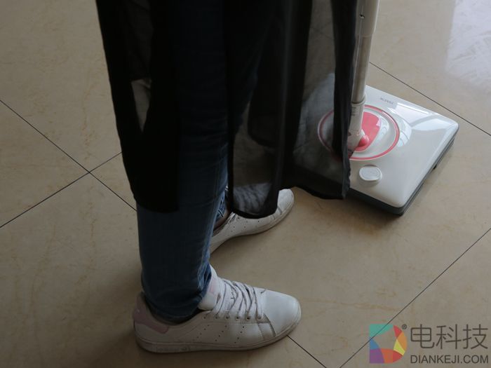 擦地机的底部做了人手仿生设计,使它以每分钟擦洗1000次的高频率往返摩擦地面。使用它不需要弯腰,基本上不需要用力,还能省水。