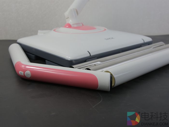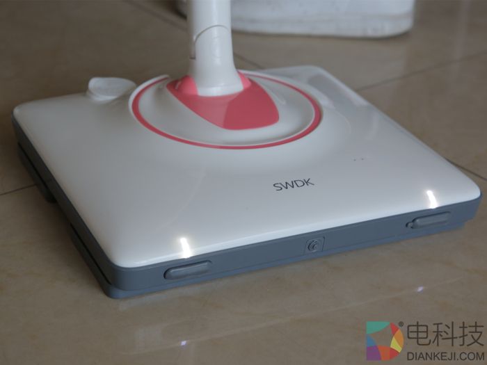 值得一提的是,擦地机还配备前置探照灯,手柄下拉即可开灯,黑暗角落也能照顾。