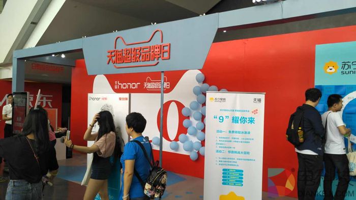 这次发布会在一开始就给大家带来了不一样的感觉。在现场出现了京东、天猫、苏宁、国美的展台首次开始联合销售。