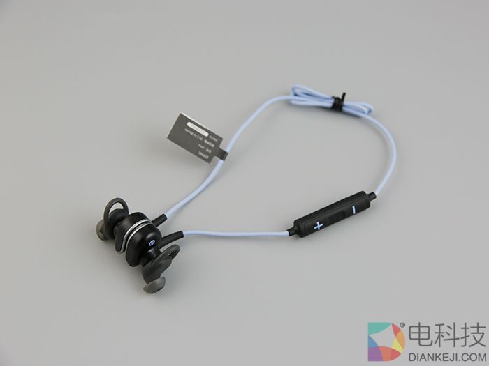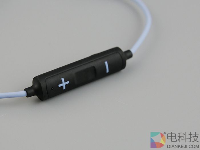 而在耳机的控制方面,魅族EP51蓝牙运动耳机采用了三键式的操作方式。通过加减符号控制音量大小,中间方形凹位键负责播放和暂停,切歌的话上下首音乐是长按加减号按键,而耳机配对只需按住凹键开机蓝灯闪烁后即可。