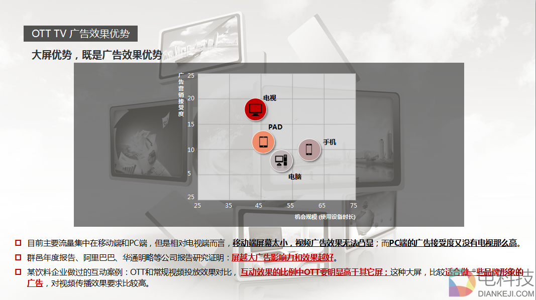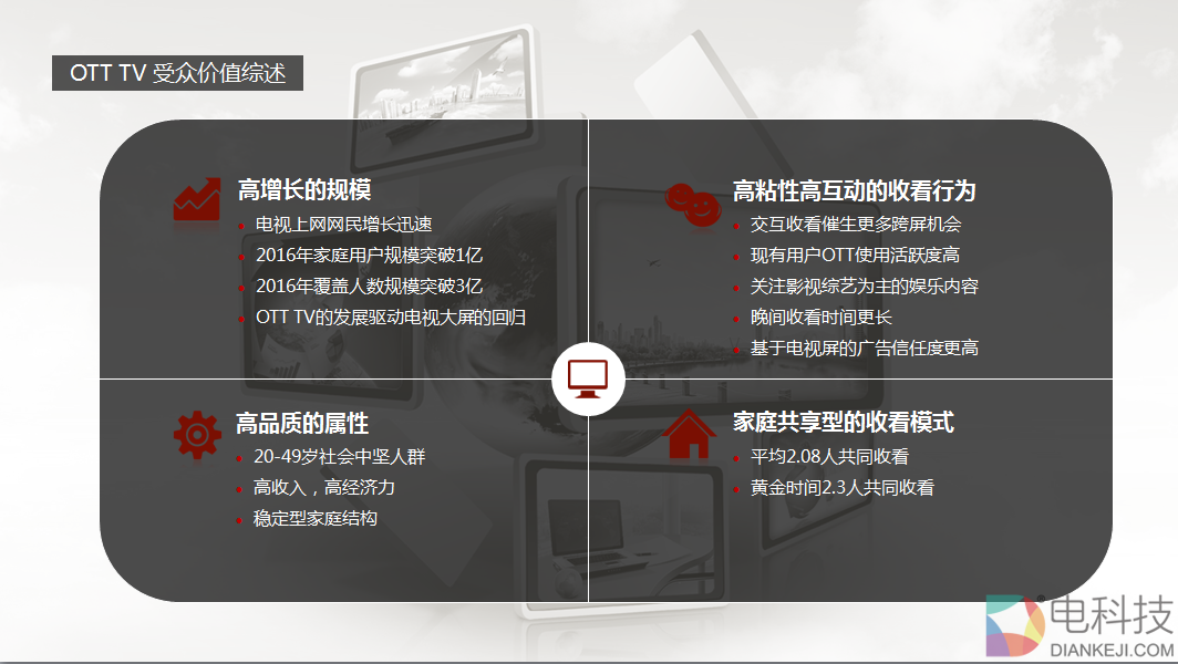 下面是封保成演讲的主题PPT,演讲以酷开的角度来看待整个OTT大屏营销行业,从OTT大屏营销的现状着手,对未来该领域的趋势做出了展望。干货满满,十分具有指导价值。