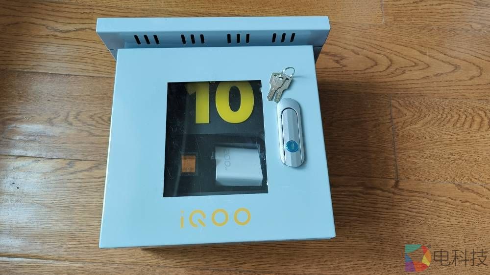 iQOO 10递给媒体的邀请函这次是一个铁皮制的房屋状小箱子,还贴心的配了一把钥匙,拧开锁扣就可见里面放了一个200W的快充头。