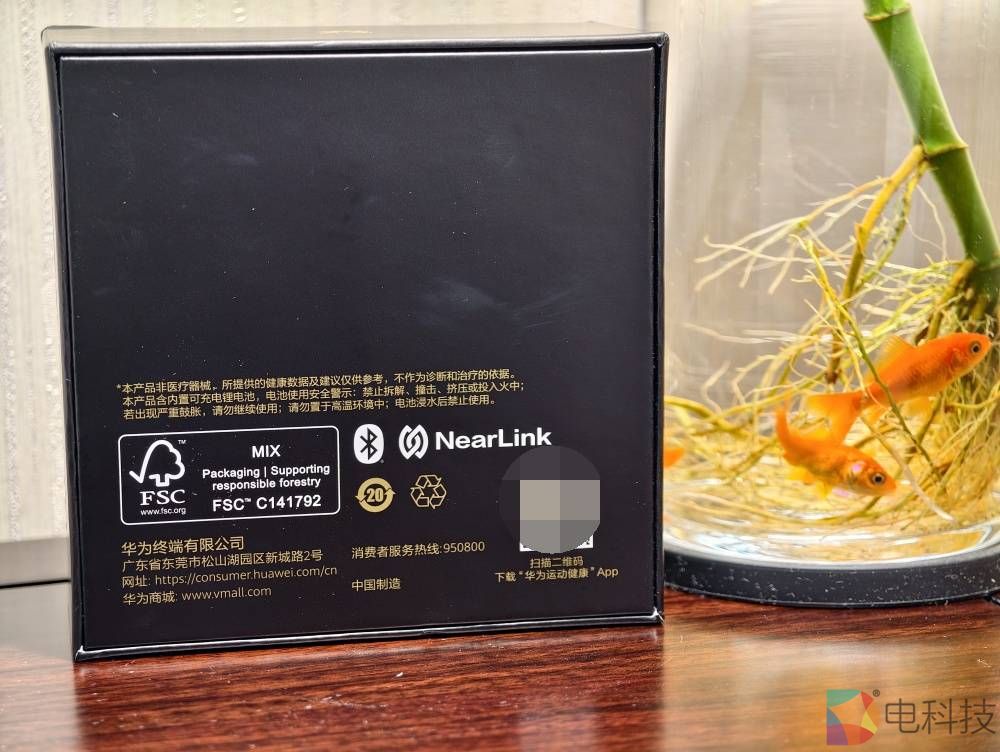 圆形传感器区域集成了多个通讯和监测元件,NFC、心率、血氧等一应俱全,印证了华为在健康监测领域的技术积累。