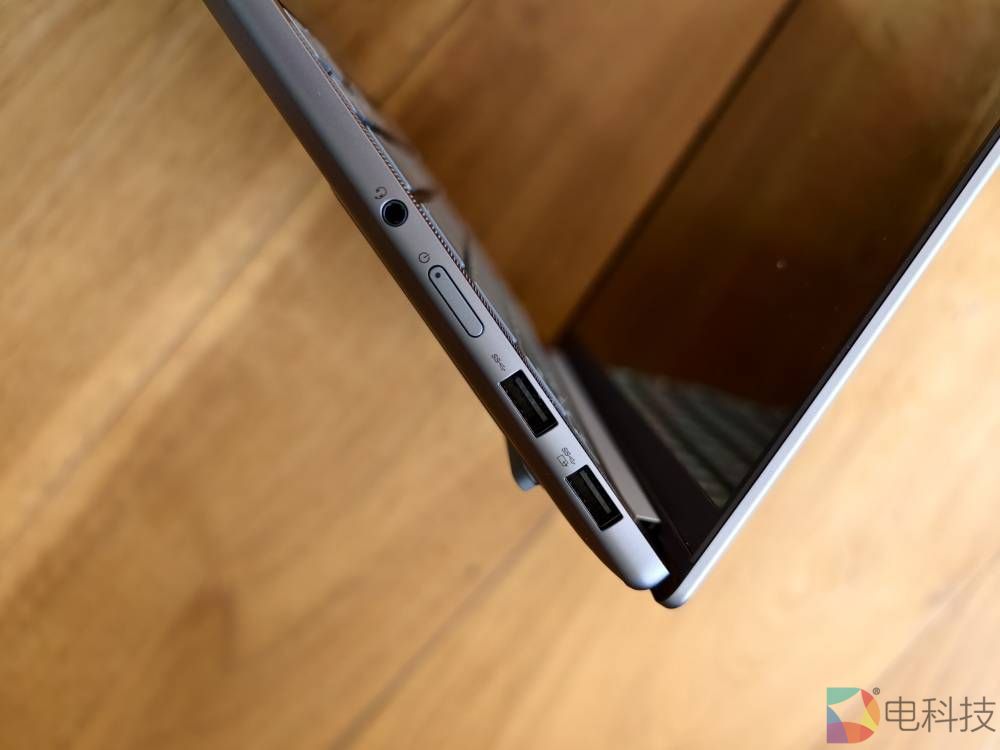 - 右侧:耳机 / 麦克风二合一接口,配备两个 USB 接口和电源接口,日常连接鼠标、U 盘等外设完全够用。