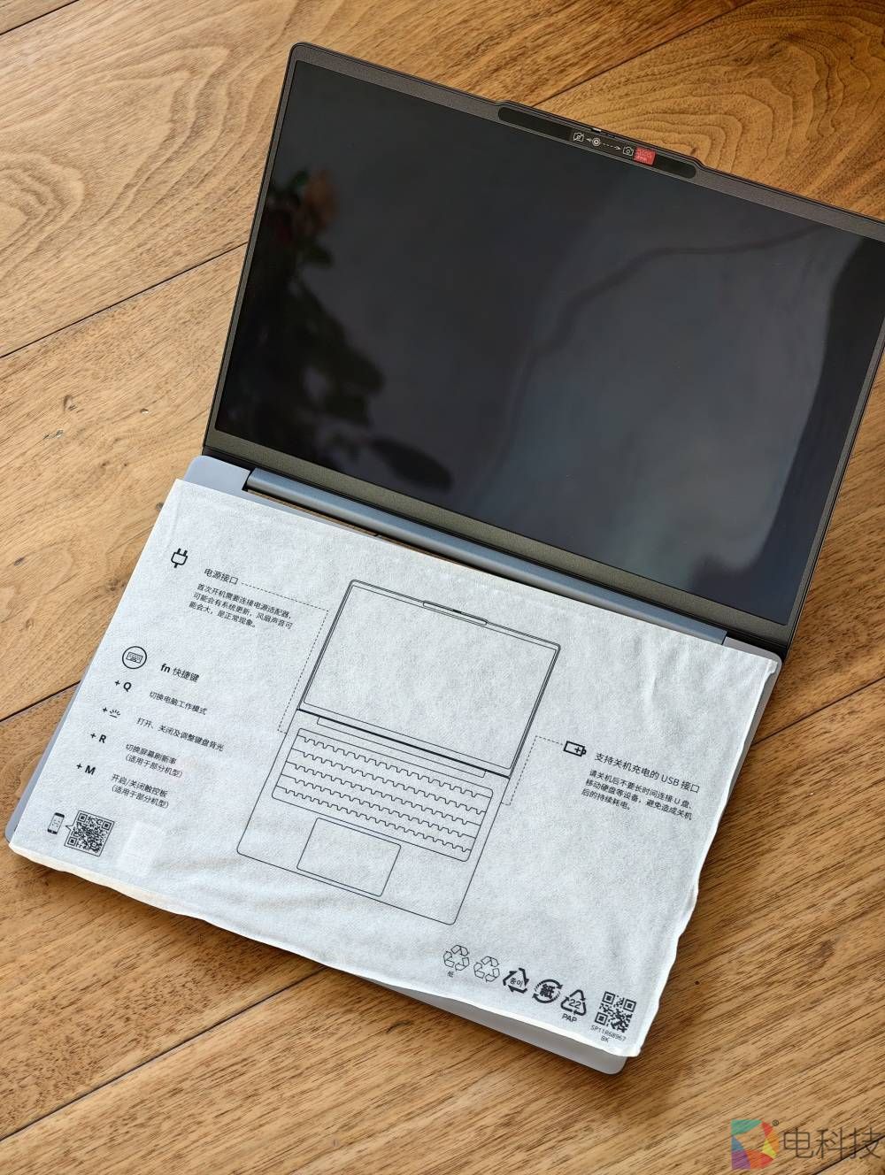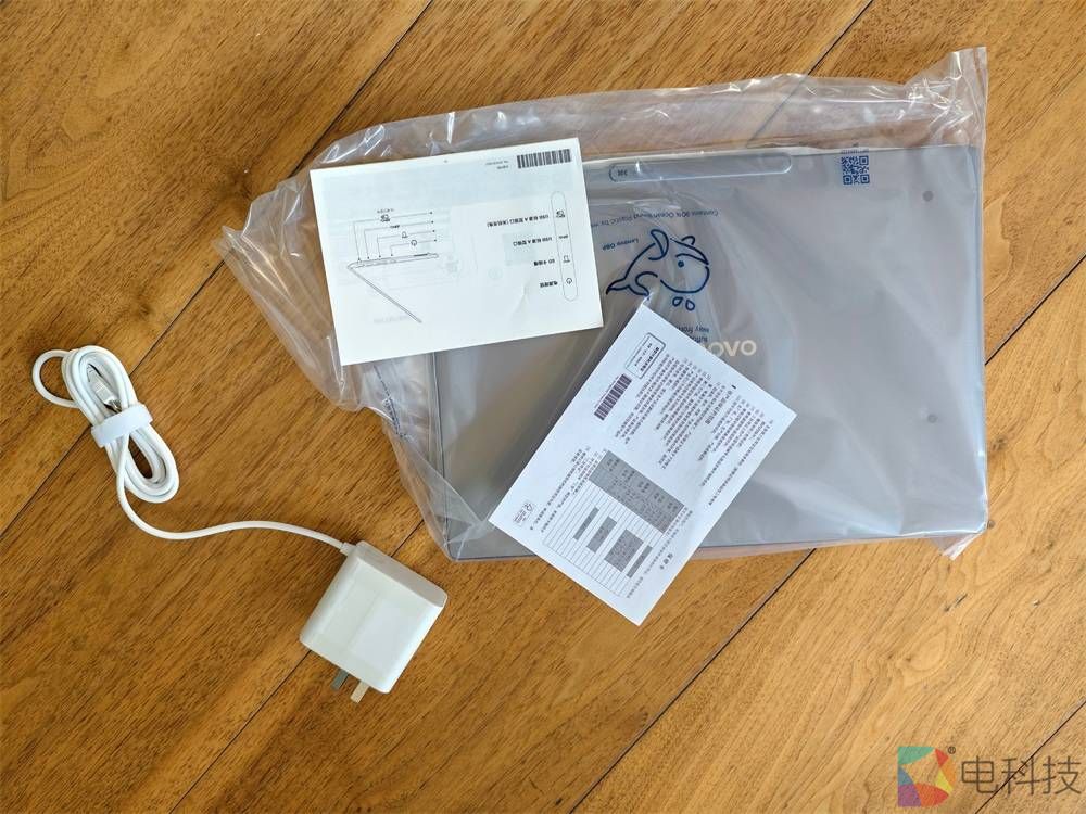 打开包装,除了被透明塑料膜包裹的笔记本本体,还配有白色的便携电源适配器、简明的说明书与功能指引卡。电源适配器体积小巧,白色线缆规整易收纳,对追求便携的用户十分友好。