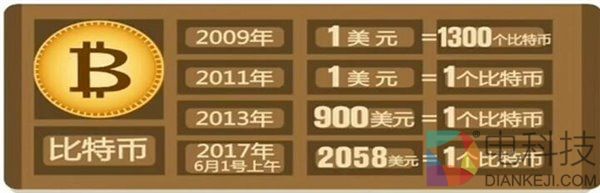 2009年比特币刚被提出时,一美元可以兑换1300个比特币,到了2011年,一美元可以兑换一个比特币,紧接着两年之后,2013年,想买一个比特币就要花费900美元了。而到了今天,一比特币的价格是多少呢?最新数据显示,6月1日上午,比特币创最新价格2058美元。