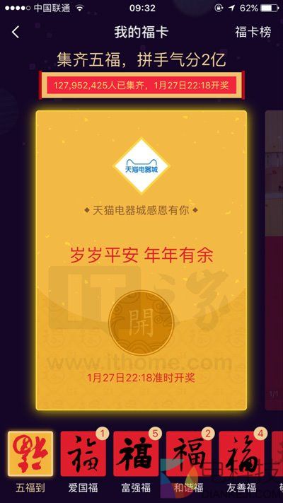 2017年支付宝集五福活动即将在除夕夜22:18分结束。相比2016年的活动,截至IT之家发稿前,今年已有近1.3亿用户完成集福。因此