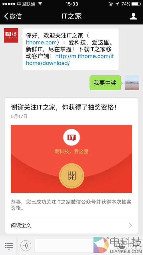 ①如何关注IT之家微信公众号并赢得奖品?微信搜索“IT之家”或扫下方二维码,关注并回复“我要中奖”即可。