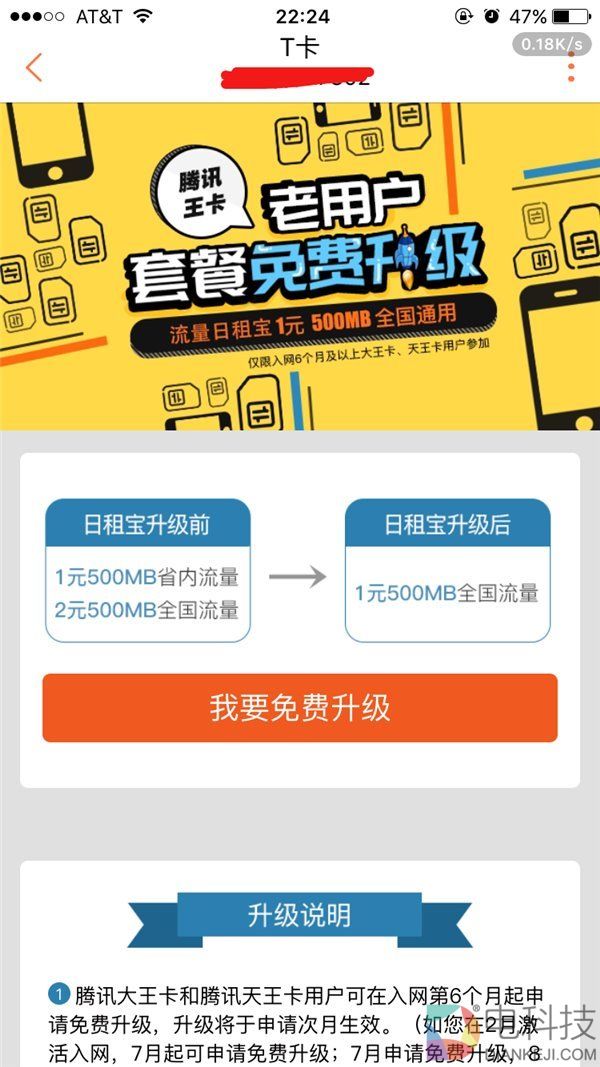 IT之家5月23日消息,昨天IT之家曾报道支付宝蚂蚁大宝卡老用户套餐免费升级,每月多送全国500MB流量/50分钟通话,今天腾讯王卡也推出了类似的福利,由之前的1元500MB省内流量/2元500MB全国流量免费升级为1元500MB全国流量,用户需要在激活开通第6个月起才可申请。