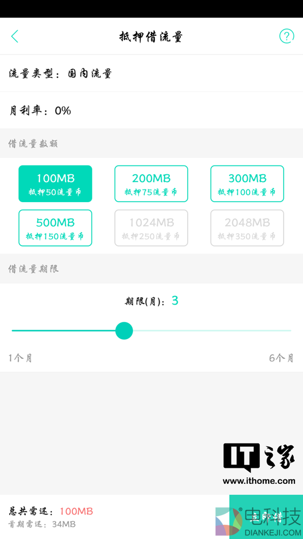 目前借流量的额度从100MB到2048MB左右不等,借流量期限最高可选6个月。