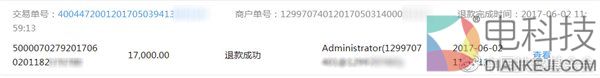 1.7万元在6月2日11点59分13秒就已经完成退款,原路退回到刘先生的账户,并在14点13分得到刘先生在后台的确认。
