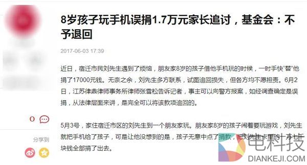 感谢IT之家 网友码农街 的线索投稿IT之家6月4日消息 近期有媒体报道了《孩子玩手机误捐1.7万元,基