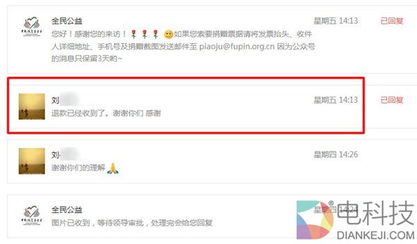 工作人员收到刘先生提供的退款申请、捐赠截图和身份证明材料;