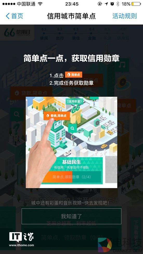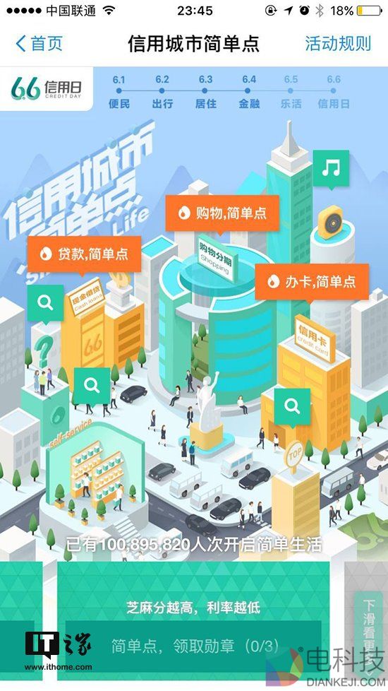 感谢IT之家网友 J彳氵亍 的投稿IT之家6月4日消息 支付宝应用中已经开启了芝麻信用66信用日活动,时