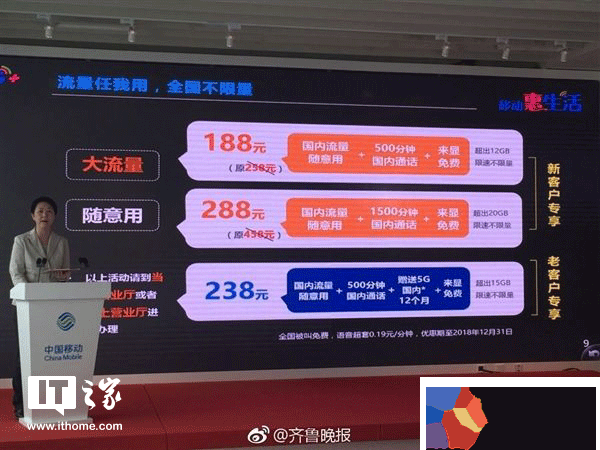 虽然中国移动方面后来表示,港媒曲解了李跃的发言,李跃的本意是运营商不应该大规模地发展不限流量套餐。但中国移动对待不限流量的态度已经彰显,那就是不支持,这和中国联通、中国移动(IT之家注:此处应为记者笔误,应为中国电信)的积极态度形成了鲜明的对比。