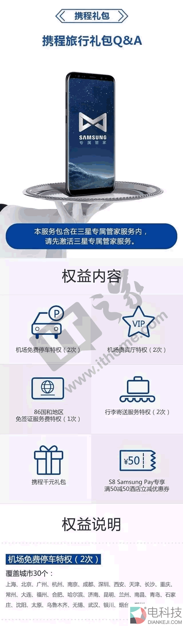 进入6月(三星官方对外公布是5月28日),三星又在国内推出了全新的升级版专属管家服务大礼包,这次是联合携程旅行网,福利看起来确实很不小,包括机场免费停车、机场贵宾室、满减现金优惠券——