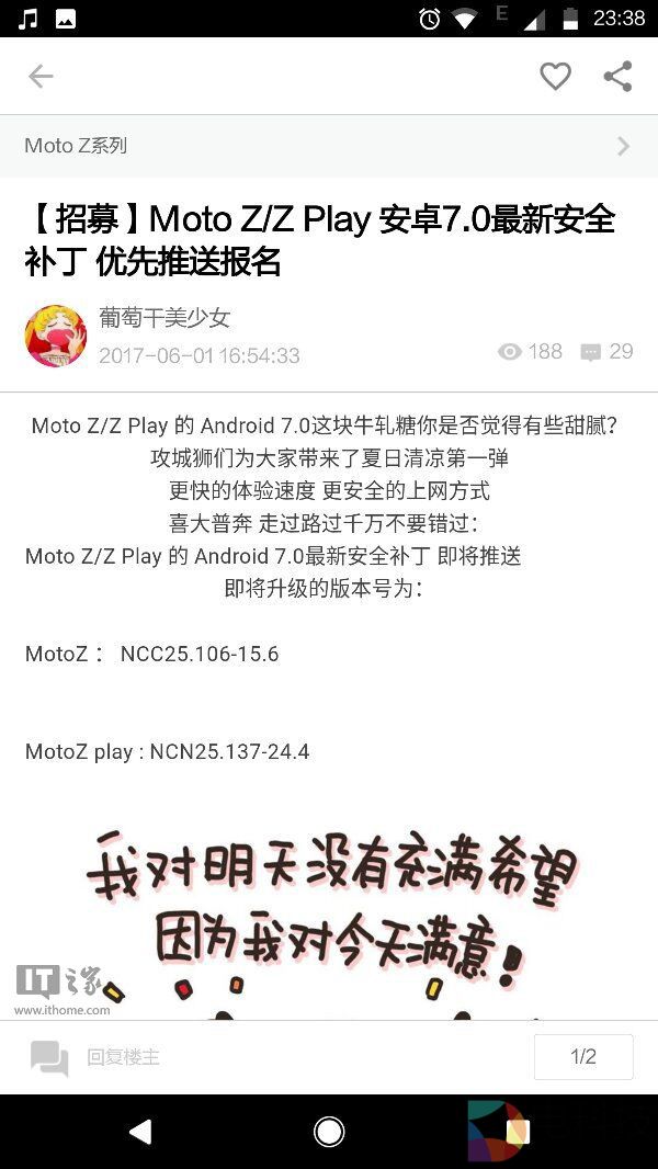 IT之家在查询Moto的论坛时发现,目前官方已经正式宣布了Android 7.1.1的内测活动,只要你报名,就可以提前享受Android 7.1.1的推送。