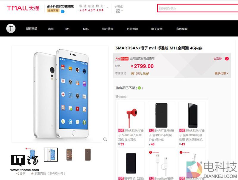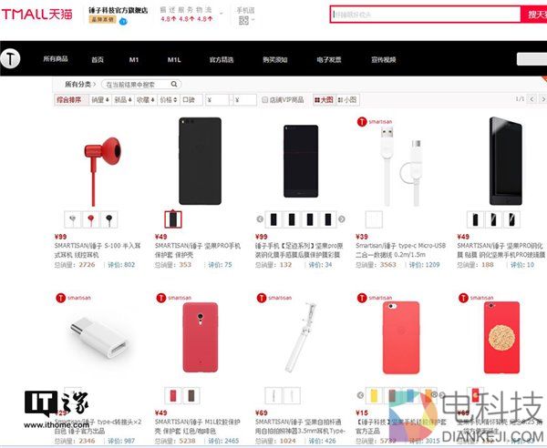 IT之家发现,目前锤子科技天猫旗舰店内只剩下了各种配件,包括手机保护套、外壳、耳机线等等。