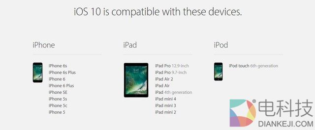 iOS 10升级支持设备列表