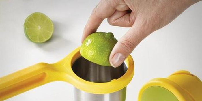 简单地说,这货由两个部分组成,各自带着长长的把手,使用的时候,先将柠檬之类的放进“漏勺”,然后,向中间“挤”两个把手,在螺纹的神奇魔法下,“漏勺”中的结构会向下施加巨大的压力,从而将柠檬的汁液全部榨干~