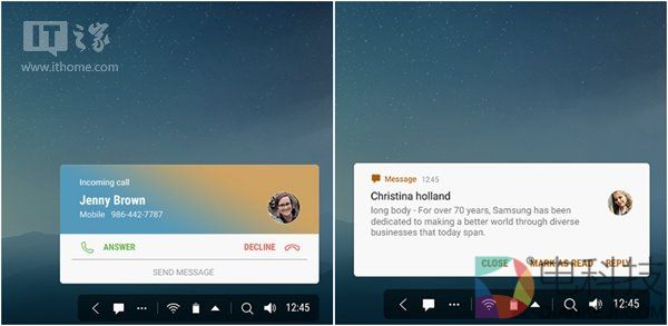 在桌面模式下,三星DeX提供与Galaxy S8相同的按钮布局,包括应用程序菜单,家庭和左下角的最近的应用程序键,以及包含通知,快捷方式和右侧其他有用工具的任务栏。在多任务模式下,有与Galaxy S8本机多任务相同的界面布局,你也可以从底部状态栏关闭应用程序。