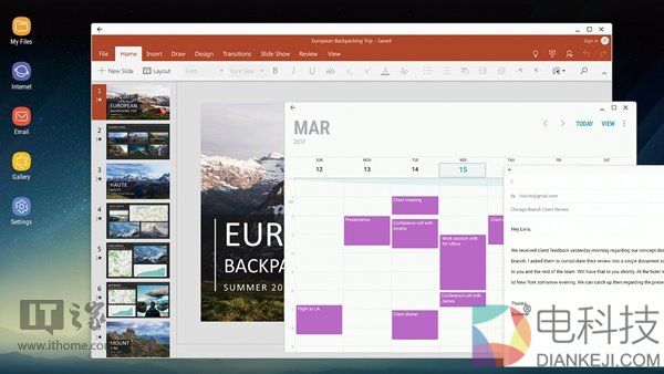 三星DeX连接后的应用程序运行思路和微软的UWP也类似,可以在移动端或桌面平台运行,三星目前还没有针对大部分应用进行支持和优化,限制了这个功能的应用前景,不过对于三星S8而言,其产品本身的销量可能比大部分Win10 Mobile设备要大(不是说全部),这对于三星而言,未来想要让DeX功能进一步横向扩展会相对轻松一些。