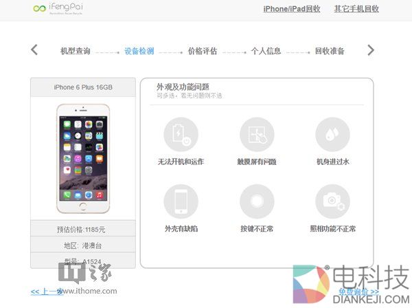 在实际进行回收之前,IT之家小编先利用已选定各自平台的询价功能对手上的iPhone6 Plus、iPhone5s和iPhone5进行了估价,估价的结果如下: